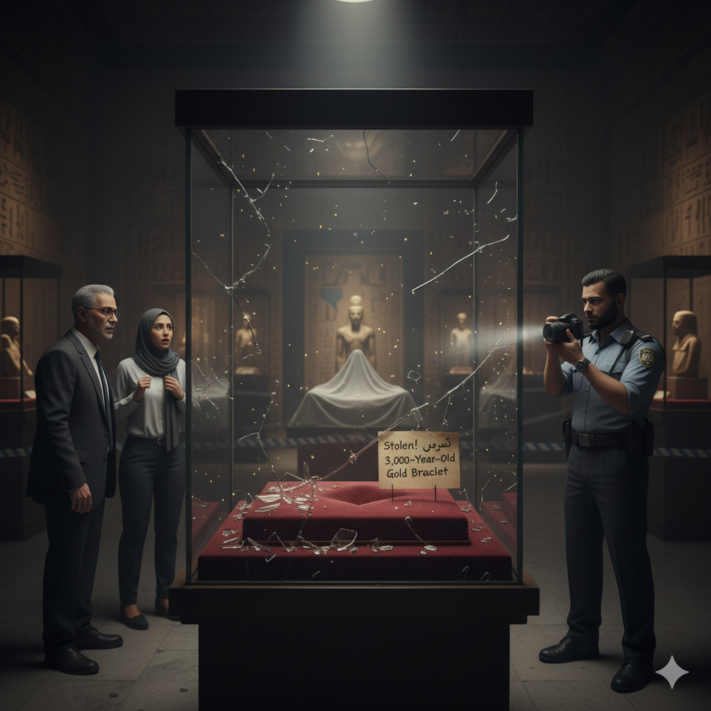 A 3,000-year-old (TrustedPakistan.com) gold bracelet belonging to the era of Pharaoh Amenemope has been stolen from a museum in Egypt, raising global concerns over the safety of ancient heritage. The incident highlights how even precious artifacts are at risk due to weak monitoring systems in major museums.