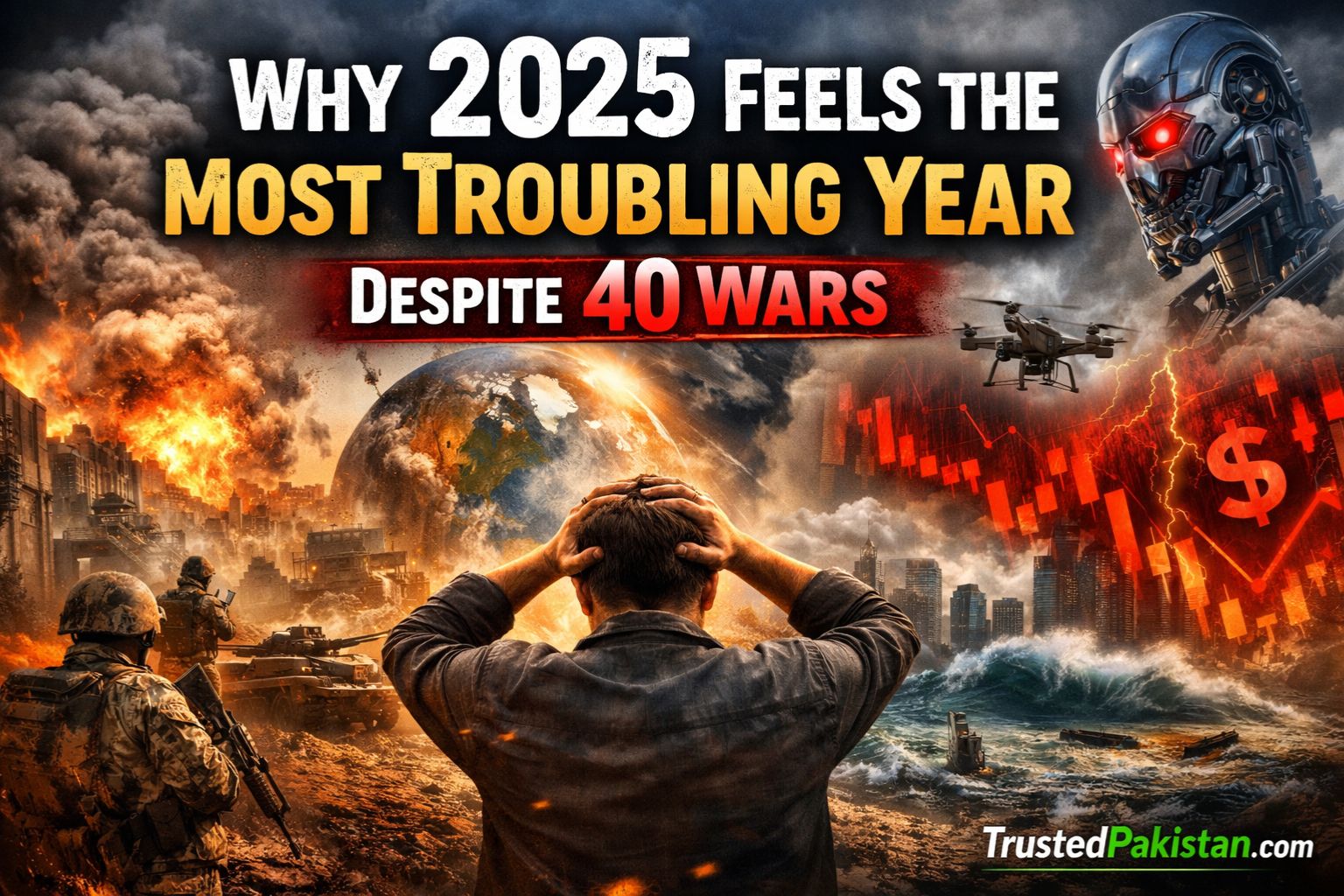 Why 2025 Feels the Most Troubling Year Despite 40 Wars is not just about violence or geopolitics. It is about layered crises, nonstop digital fear, economic pressure, environmental threats, and deep emotional burnout. Humanity has survived wars before, but rarely has it faced so many interconnected challenges at the same time.